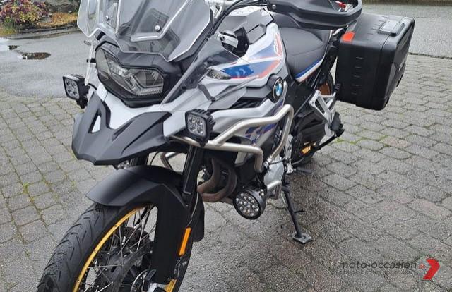 BMW F850gs Rally, Année 2018, 21000 km, 95 CH, Couleur Blanc/Bleu/Noir, 853cc, 229 kg, type Adventure, Prise 12V, ABS, Alarme, Réglage automatique de l\’amortisseur Porte-bagages, régulateur de vitesse, Manteaux supplémentaires, protecteurs de levier, Ordinateur de bord, Lumière LED, Centre de soutien, Système de navigation, Sacs latéraux, Tankpad, Sac supérieur, Contrôle de traction, coussins chauffants, Barres antiroulis, Pare-brise…