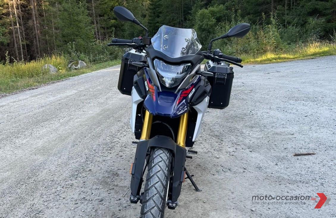 BMW G310GS, Année 2019, 13900 km, Couleur Bleu / Noir / Rouge, 34 ch, 313 cc, Prise 12V, alarme, Freins Abs, démarrage électrique, Sacoche de réservoir, Centrale électrique, Dissipateurs de chaleur, régulateur de vitesse…