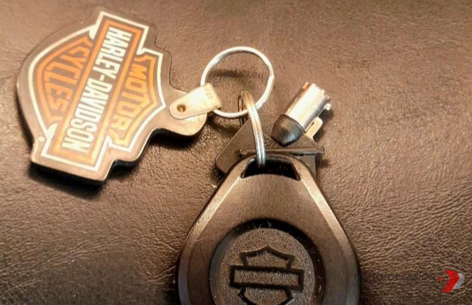 Très belle moto avec sa peinture bleu mat d’origine. À voir absolument : kit Screamin Eagle Stage 1, compteur/compte-tours HD, feu arrière LED 3 barres, phare avant LED, sacoches latérales. Livrée avec ses pots d’origine et pleins d’autres équipements.