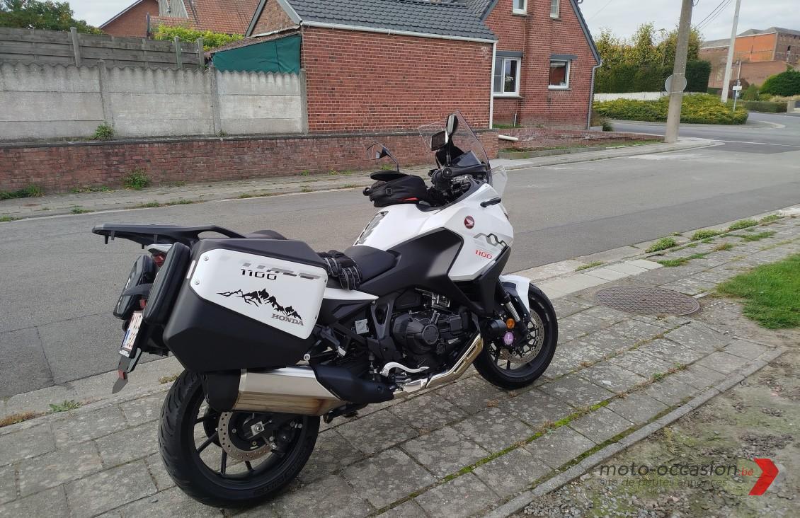 Moto HONDA NT1100 DCT. Avec valises, top case, amortisseur Shock Factory, Phares additionnels, selle confort (pilote et passager) + une selle basse pilote, pare-mains, GB avant et arrière, protège couronne arrière, extensions de rétroviseurs, support alimenté pour GPS TomTom. Elle est en parfait état, factures d\\\\\\\’entretien disponibles. Dernier entretien effectué mi-février. La moto est encore garantie jusque novembre 2028. Région de Tournai. Contact par mail ericleroy1962@gmail.com