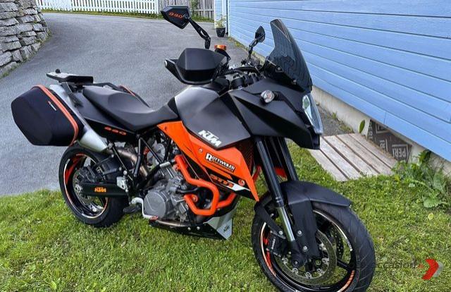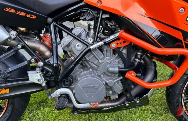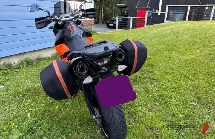KTM 990 SMT, Année 2010, 37800 km, Couleur Orange/Noir, 116 ch, 205 Kg, Prise 12V, Porte-bagages, Centrale, Protecteurs de levier, Sacoches, Sac haut de gamme, Dissipateurs thermiques…
